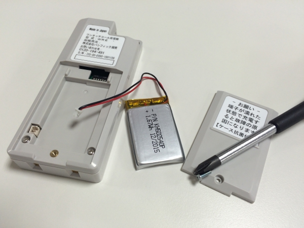 ●ワンタッチコール受信機は電池蓋をあけるとリチウムバッテリーが入っています。