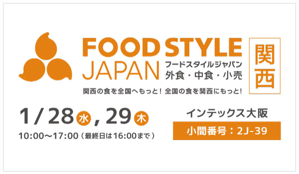 2026年1月28日(水)、29日(木)に「インテックス大阪」で開催される「FOOD STYLE JAPAN 2025 <関西>」 に今年も出展いたします。