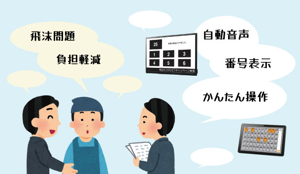 - 声での呼び出しが不要に⇒飛沫問題を解決!