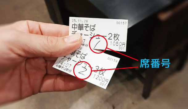 スタッフが食券を回収し席番号をメモするところまでは従来の運用と同じです。